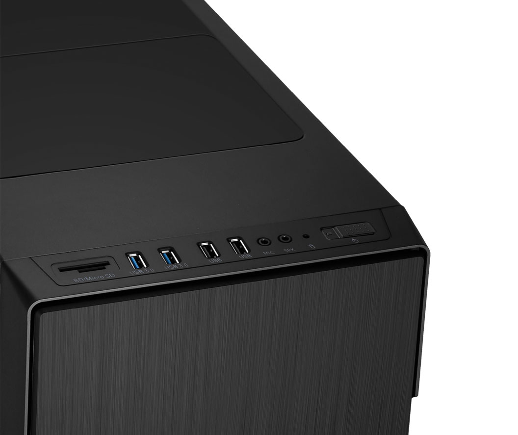 Im Top-Panel finden wir zwei USB 2.0 Ports und zwei USB 3.0 Ports sowie Audio-Verbindungen. Darüber hinaus verfügt Hummer ZN über einen zusätzlichen Mikro-SD- und SD-Kartenleser, der jederzeit eine komfortable und zugängliche Datenübertragung auf das Gerät ermöglicht.