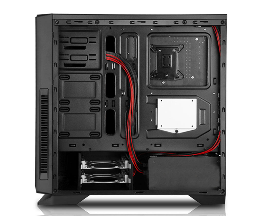 Es hat ein Fach an der Unterseite, um die PSU und Festplatten zu lokalisieren, so dass die von ihnen freigesetzte Wärme nicht auf die anderen Komponenten übertragen wird.