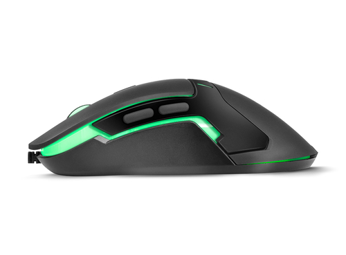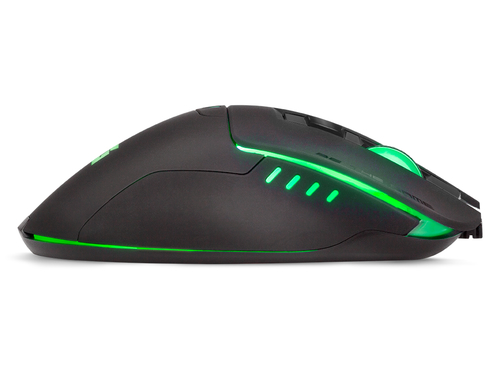 Darüber hinaus können Sie auch die Intensität der Beleuchtung regeln oder der Seite und den zentralen Tasten die schnelle Schießfunktion zuordnen, ideal für Schützen.