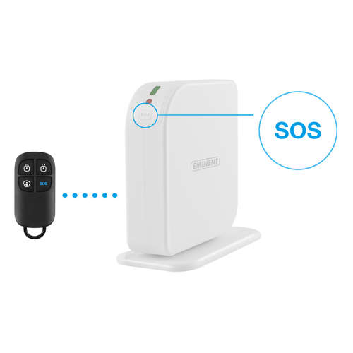 Jeder kann das grundlegende GSM EM8605 Alarmsystem verwenden. Sowohl die Basisstation als auch die Fernbedienung haben eine Paniktaste (SOS), die Textnachrichten sendet und die Sirene aktiviert, sobald sie aktiviert ist. Verwenden Sie die Fernbedienung zum Ein- und Ausschalten des Alarms. Mit der Eminent 8605 App können Sie das Alarmsystem von überall auf der Welt steuern.