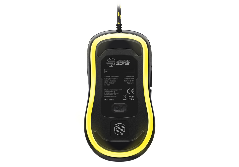 Alle Design Puristen, die in keiner Verpflichtung zu den Features gesehen werden, werden die Maus für Sharkoon SHARK ZONE M52 Spiel lieben. Seine stilvolle schwarze Oberfläche ist klassisch und zeitlos, ohne Ecken und Kanten, und ist für jeden Ort der Arbeit oder Spiel gemacht. Seine asymmetrische Form, mit leicht zugänglichen flachen Seitenknöpfen, ist perfekt ergonomisch und ist immer sehr komfortabel wie wir arbeiten oder spielen. Das geflochtene Textilkabel, in einem typisch schwarz-gelben SHARK ZONE Design, sowie das weißfarbig beleuchtete Logo und die RGB-Beleuchtung unten, bringen alle notwendigen Potenziale des Geräts heraus. Dank der bequemen Gummioberfläche ist der M52 mit seinem Federgewicht immer sehr komfortabel im Griff, auch nach vielen Gebrauchsstunden.