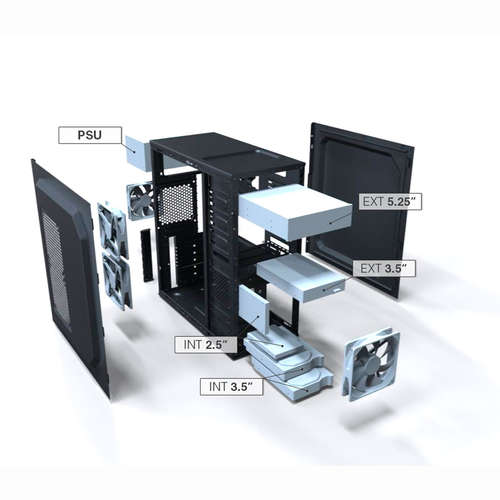 Die Titan Abmessungen sind reduziert, 198 x 412 x 403 mm, und ein Gewicht von 3,5 kg, macht es zu einem idealen Mini-Turm überall ohne Aufwand transportiert werden. Trotz seiner Größe hat es die Fähigkeit, bis zu viert Lüfter zu installieren und die Möglichkeit, Diagramme von 330 mm Länge und Kühler bis zu 150 mm Höhe zu integrieren.