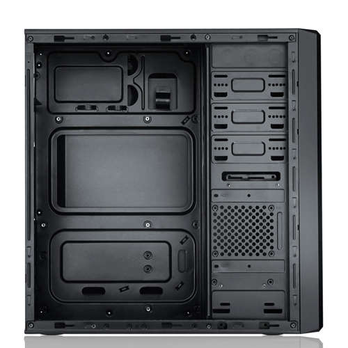 Titan ist ein elegantes Chassis in schwarz sowohl außen als auch innen. Seine Vorderseite hat einen abrupten Abschluss. Unter anderem finden wir polierte Kanten, Platz, um bis zu 5 Festplatten und Platz für die richtige Verdrahtung Management zu installieren.