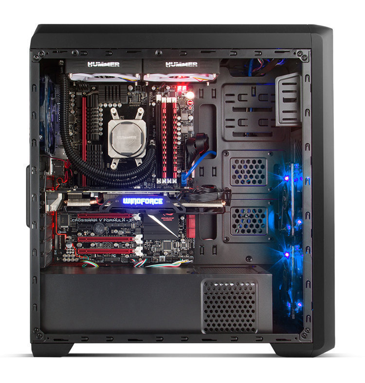 - Vorbereitet für Flüssigkeitskühlung mit Platz zur Montage von Heizkörpern bis 240 mm
