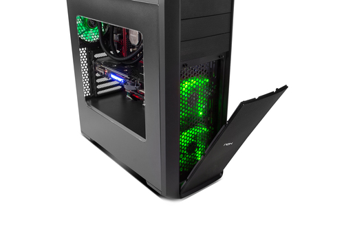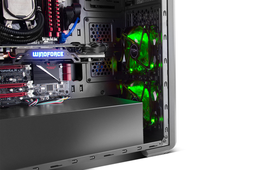 Dank des Frontgitters und der Ventilatoren wird der Kaltluftdurchsatz direkt innen einlaufen, um die Grafik und andere Komponenten zu kühlen. Die Anordnung der PSU und des hinteren Lüfters wird dazu beitragen, die gesamte Wärme nach außen zu treiben und einen effektiven Luftstrom zu ermöglichen.