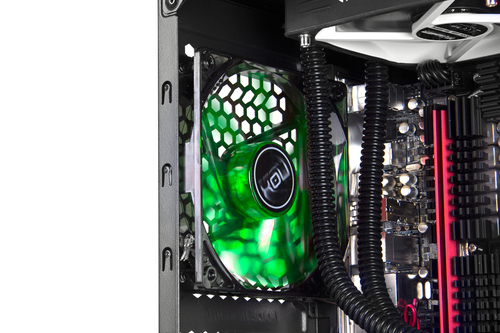 - Vorbereitet für Flüssigkeitskühlung mit Platz zur Montage von Heizkörpern bis 240 mm