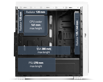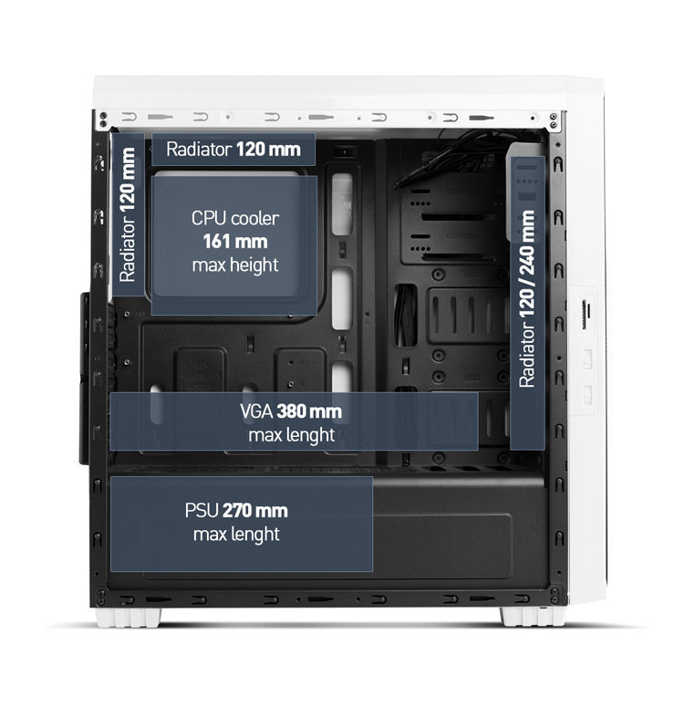 • Kühler CPU: 161 mm (Maximalhöhe)
