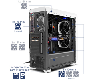 Was die Speicheroptionen angeht, hat Hummer ZS Zero Platz, bis zu 6 Einheiten zu installieren, da es zwei externe Buchten von 5,25 "und Kapazität für vier weitere Einheiten innen, zwei von 3,5" auf der Unterseite und zwei SSD von 2,5 "auf der Seite.