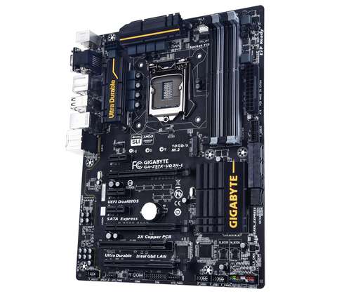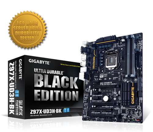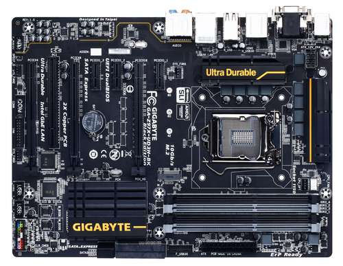 Gigabyte GA-Z97X-UD3H-BK. kompatible Speichertypen: DDR3-SDRAM, Art der Speicherplätze: DIMM, Speicherkanalunterstützung: Dual. Prozessorfamilie: Intel, kompatibler Prozessor: Celeron, Core i3, Core i5, Core i7, Pentium, Prozessorbuchse: Socket H3 (LGA 1150). Unterstützt Festplattenschnittstellen: Serial ATA III. HDMI-Version: 1.4. Ethernet-Schnittstellentyp: Gigabit