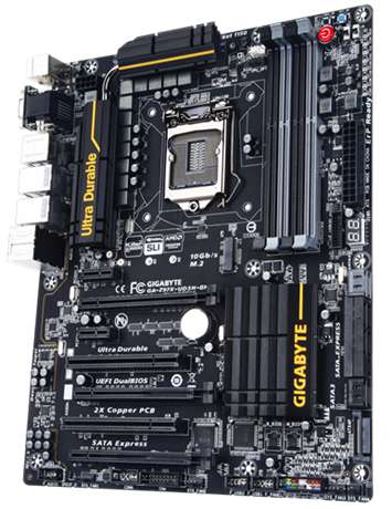 Gigabyte GA-Z97X-UD5H-BK. kompatible Speichertypen: DDR3-SDRAM, Art der Speicherplätze: DIMM, Speicherkanäle: Dual. Prozessorfamilie: Intel, kompatibler Prozessor: Celeron, Core i3, Core i5, Core i7, Pentium, Prozessorbuchse: Socket H3 (LGA 1150). Unterstützt Festplattenschnittstellen: SATA. HDMI-Version: 1.4. Komponente für: PC, Familie der Stammkartenkomponenten: Intel, Integrierte Stammkartenschaltung: Intel Z97
