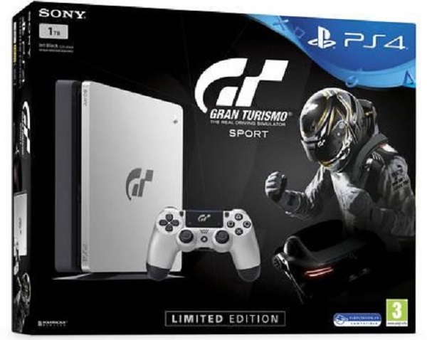 Diese limitierte Edition verfügt über ein elegantes, exklusives Silbergehäuse von Gran Turismo Sport mit dem aufgenommenen Logo und einem voll personalisierten Dualshock 4 Wireless-Befehl mit dem Gran Turismo Sport Logo auf dem Touch Panel. Die limitierte Editionskonsole umfasst eine Kopie der Standard-Edition des Spiels sowie Zugang zu 250.000 Credits für das Spiel, eine Packung mit dekorativen Aufklebern, zusätzliche Buchungsinhalte, einen verchromten Wettbewerbshelm für das Spiel und 60 Avatare für PS4.