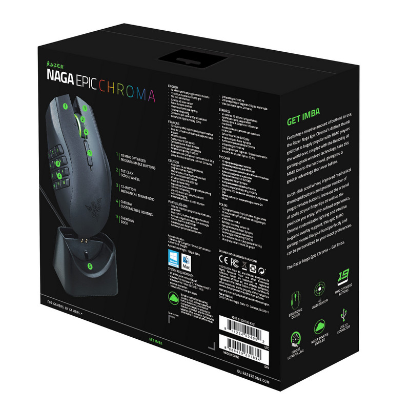 Die drahtlose Spieltechnologie von Razer Naga Epic Chroma bietet Ihnen unbegrenzte Bewegungen, ohne die Kontrolle oder Genauigkeit der Maus zu beeinträchtigen. Mit einer Ansprechrate von 1 m, mit Kabel oder Wireless, hat Ihr Razer Naga Epic Chroma zu jeder Zeit eine maximale Leistung. Darüber hinaus ist es genug, um es mit dem USB-Anschluss zu verbinden, wenn die Batterie niedrig ist, so dass die Razer Naga Epic Chroma in voller Verwendung geladen wird, ohne Zeiten der Inaktivität.