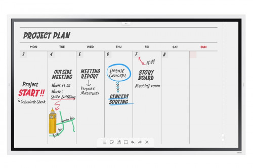 Samsung Flip kann für eine breite Palette von kommerziellen Anwendungen verwendet werden, bietet integrierte vielseitige Vorlagen. Sie können Flip als Kalender, Planer, Notiz oder Checkliste verwenden. Samsung Flip passt sich perfekt an jeden geschäftlichen Bedarf an, so dass Benutzer den Bildschirm in verschiedenen benutzerdefinierten Möglichkeiten verwenden. Samsung Flip hat bis zu 20 Seiten Rollenschreibfläche, so dass Benutzer reibungslos durch die Seiten bewegen. Darüber hinaus sorgt Flip dafür, dass die vertraulichen Informationen des Meetings in den richtigen Händen bleiben. Das verstärkte Verriegelungssystem ermöglicht es Benutzern, den sensiblen Inhalt der Ansicht zu schützen.