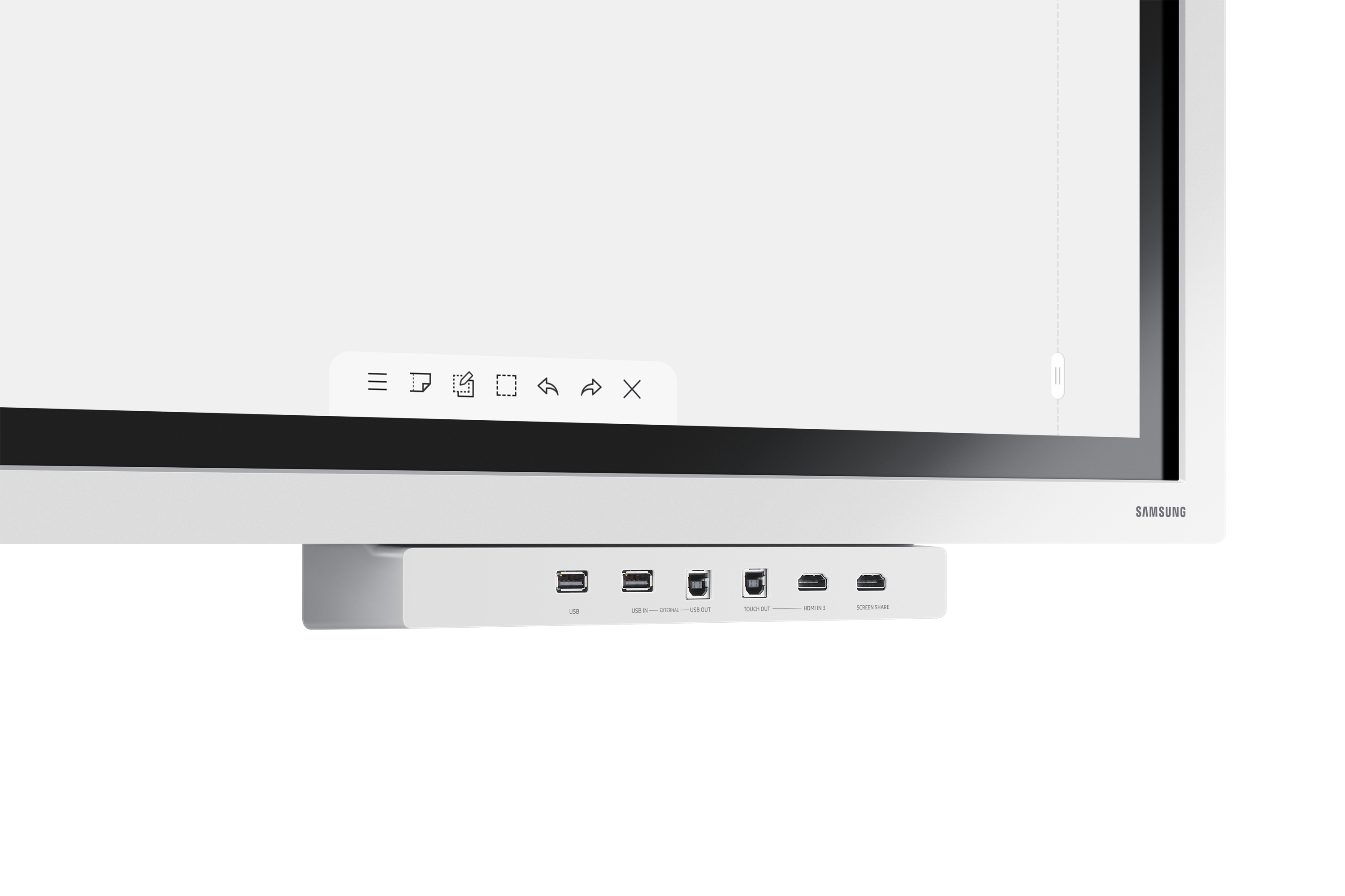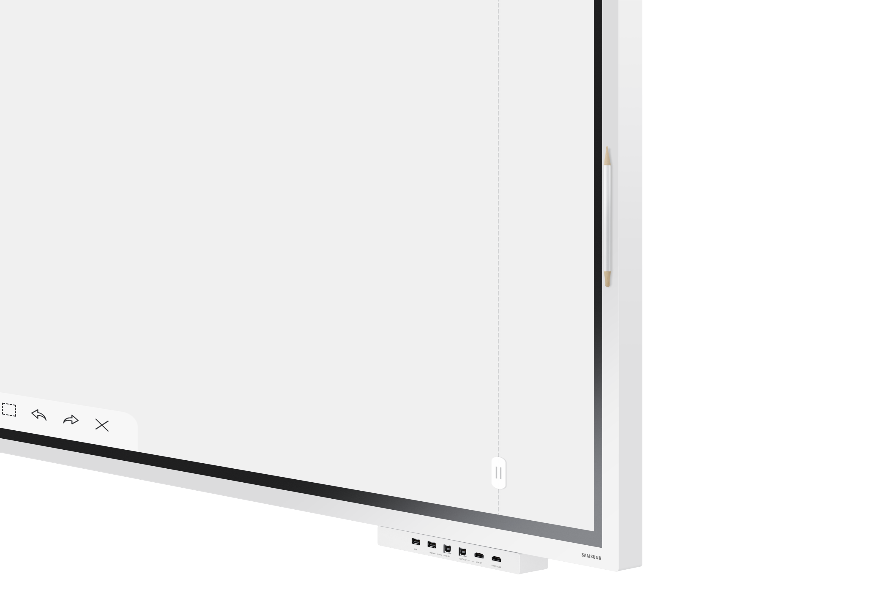 Benutzer können Samsung Flip-Inhalte auf einem anderen großen digitalen Bildschirm in Echtzeit projizieren, mit einem WLAN-Netzwerk oder HDMI-Ausgangsanschluss. Auch mit einem persönlichen Gerät verbunden, kann der Flip-Bildschirm geteilt werden. Diese Funktion ist ideal für große Meeting-Umgebungen, da sie Informationen für größere Publikum bietet.
