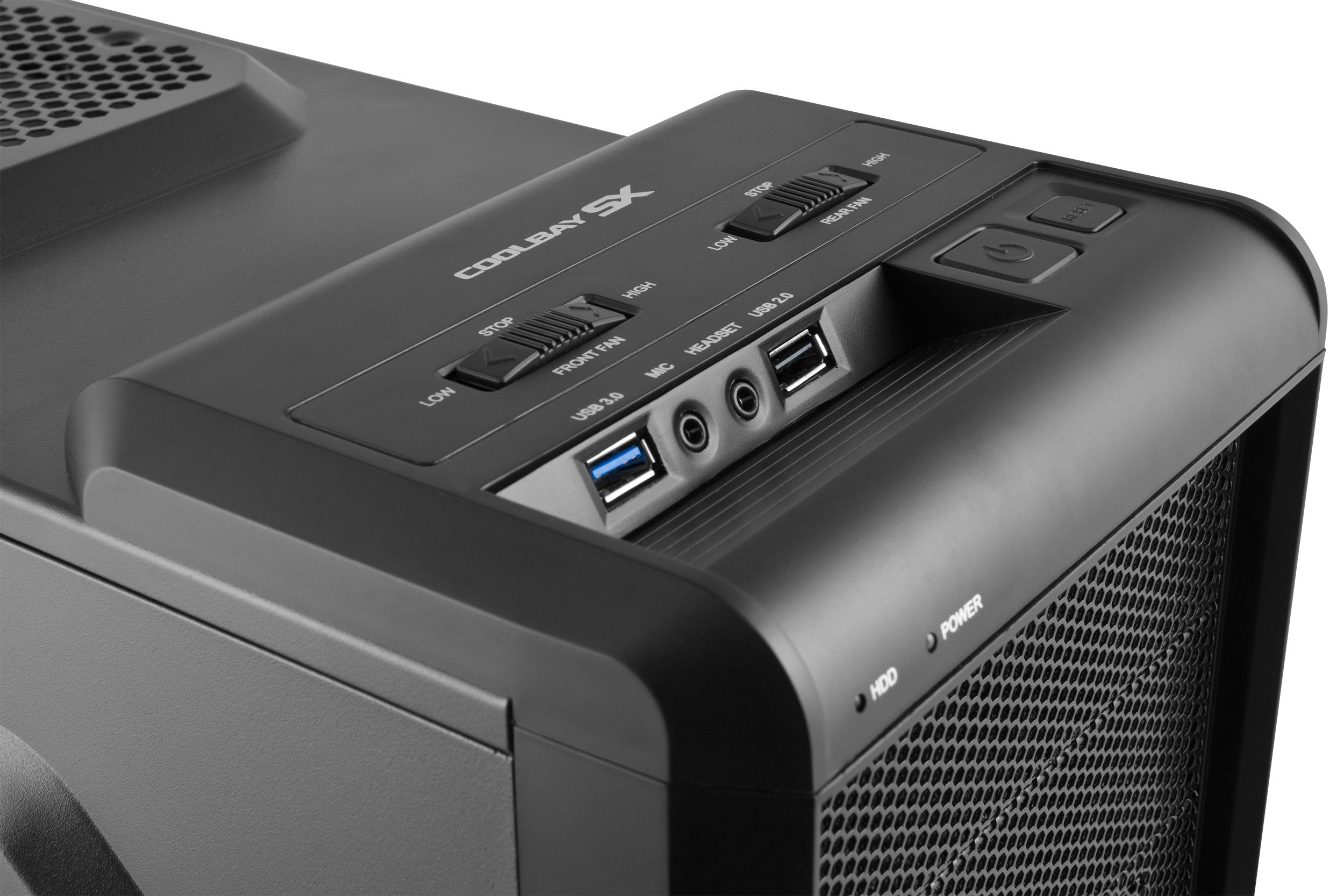 Mit den von der Oberseite der Coolbay SX zugänglichen Ports haben Sie alles, was Sie brauchen. Sie können die Geschwindigkeit der Lüfter steuern und USB 3.0 und 2.0 Ports für alle Ihre mobilen Geräte verwenden.