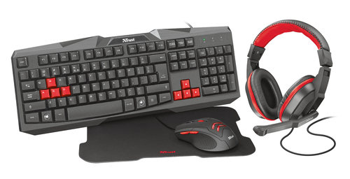 Trust 22312. Geräteschnittstelle: USB, Empfohlene Verwendung: Spiel, Keyboard Sprache: Spanisch. Produktfarbe: Schwarz, Rot. Kabellänge: 1,5 m. Formfaktor: Ambidextro, Bewegungserkennungstechnologie: Optisch, Bewegungsauflösung: 3000 DPI. Anzahl der Produkte: 3 Stück (s)